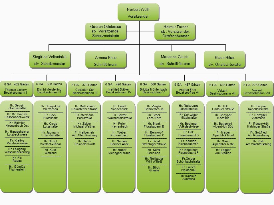 Der Verein Der Verein Organigramm Stadtverband Augsburg der Kleingärtner e.V.(zum Vergrößern anklicken) Stand: 15.04.2025 Die Geschichte Geschichte des Stadtverbandes Augsburg e.V.