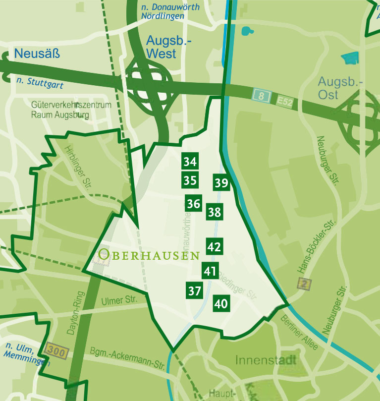 GA 39 - Kleingartenanlage Flussbauamt F Kleingartenanlage Flussbauamt F seit 1930 Anzahl der Gärten 52 Fläche 23.276 m² Straße Äußere Uferstraße Stadtteil Oberhausen Ansprechpartner Robert Engelhart Kontakt in der Anlage erreichbar Besonderheiten direkt an der Wertach gelegen, schöner Spazier- und Radwege entlang des Wertachufers